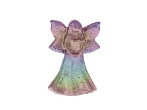 This Bismuth Angel displays a beautiful rainbow of vibrant, iridescent metallic Colors and is a symbol of peace and purity.