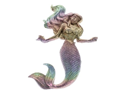This Bismuth Mermaid displays a beautiful rainbow of iridescent metallic Colors and has a cleansing energy that aligns the chakras and removes negativity.
