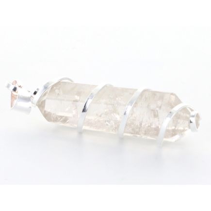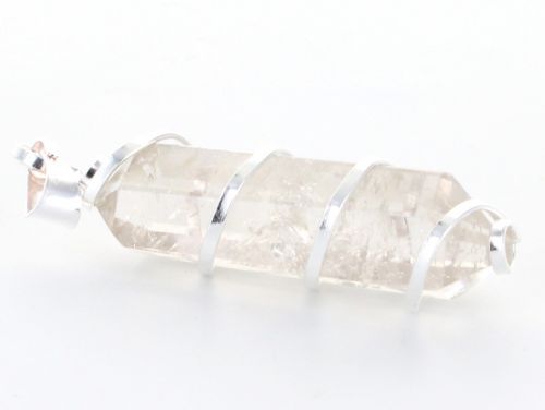 This lovely pendant features a polished, faceted Smokey Quartz double point, conveniently and securely held in an attractive spiral cage, allowing you to appreciate its beauty.