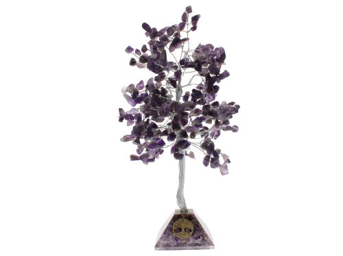 Bring protective energy and beauty into any space with his decorative Gem Tree set on an orgone pyramid base and adorned with healing crystals attached to wire branches, allowing them to be arranged into the shape of tree you desire.